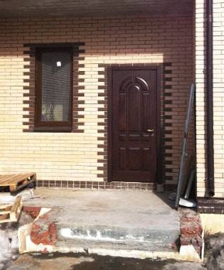 Учитывая пожелания заказчиков, наши специалисты предложили им входные двери с массивом из дуба с фрезеровкой в виде арки. Такое оформление в тёмном натуральном древесном оттенке придаёт изделию представительный облик и помогает сохранять тепло в помещении. Оснащение бронзовой ручкой сделало дизайн законченным.